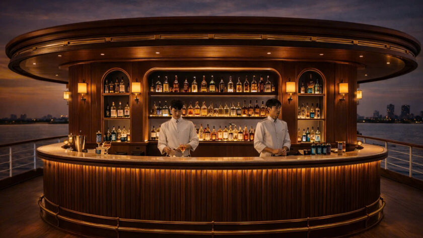 Sunset cocktail and dinner voyages unfold as refined social rituals rather than noisy banquets. Live music is acoustic and intentional. Lighting is designed to soften rather than dazzle. Tables are generously spaced. Guests are invited to linger, converse, and observe the city as it transitions from day to night.